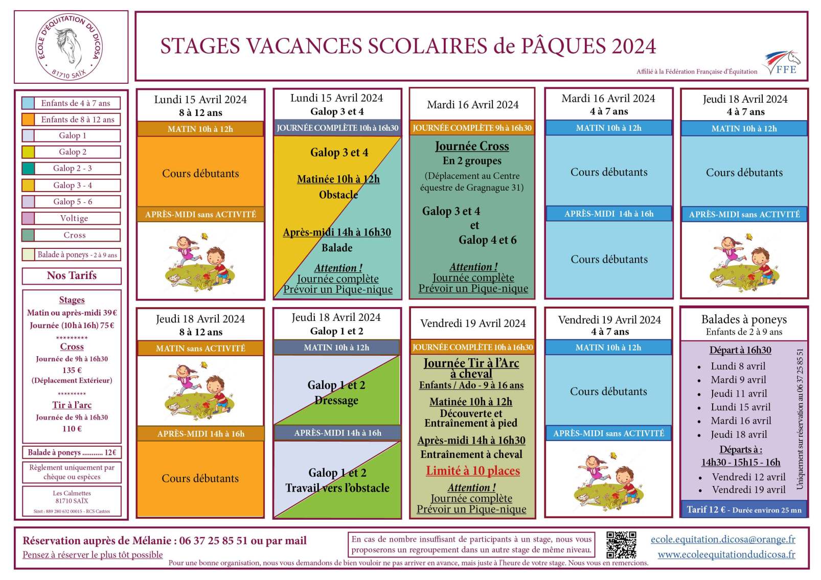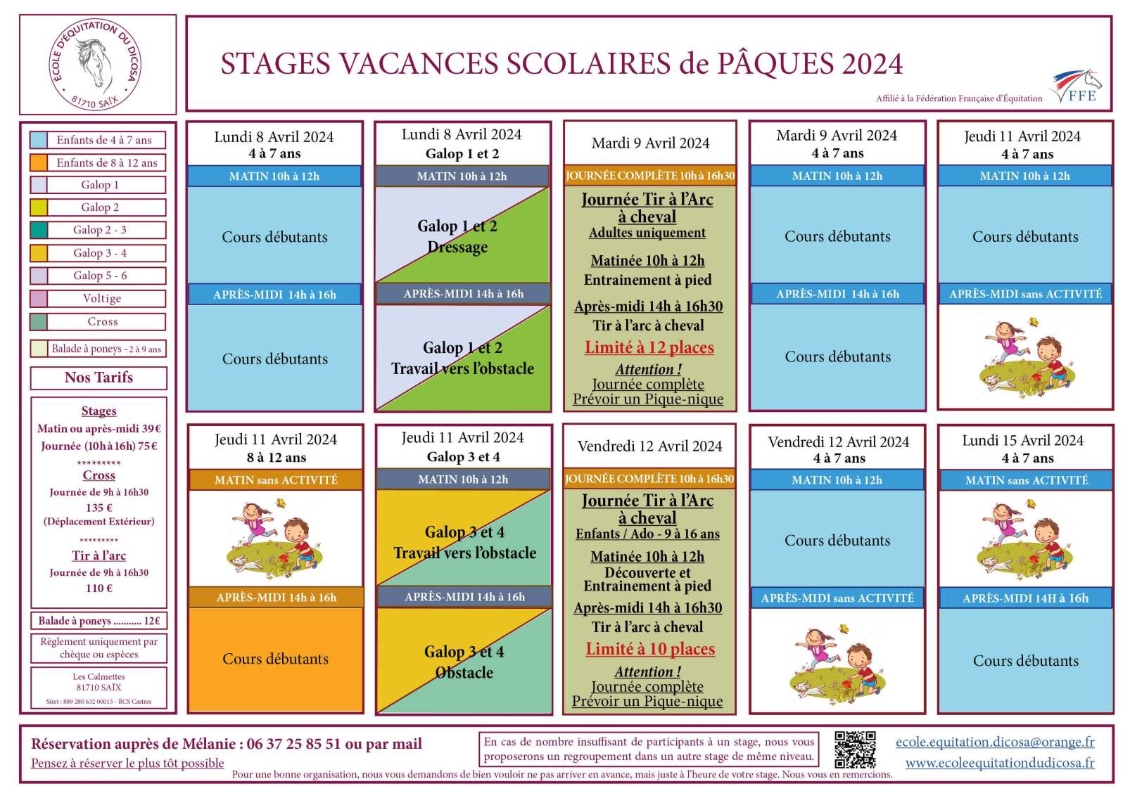 Pensez à reserver le plus tôt possible, par mail ecole.equitation.dicosa@orange.fr